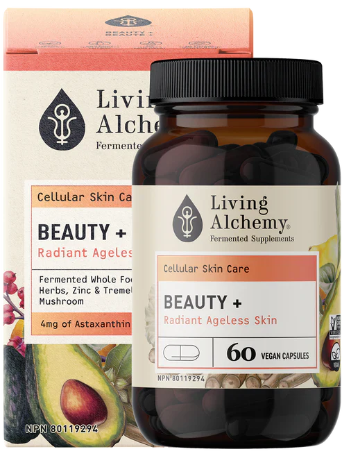 Beauté+ nourrit votre peau pour vous soutenir tout au long de votre voyage à travers le vieillissement. Nous utilisons des ingrédients biologiques complets, dont l'avocat et l'astaxanthine, pour stimuler votre bien-être.