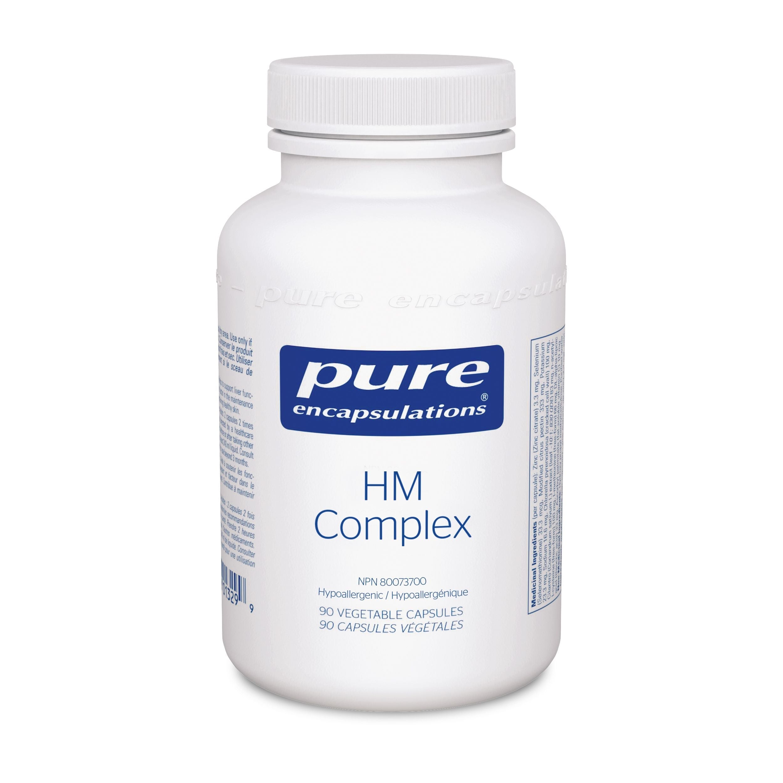 Complexe HM est conçu pou soutenir la défense antioxydante tout en favorisant la santé du foie et la fonction immunitaire. Un mélange d'ingrédients, dont la chlorelle, l'acide lipoïque, la N-acétyl-L-cystéine (NAC), le sélénium et la vitamine C, élimine les radicaux libres. Ces antioxydants peuvent également aider à réguler le stress oxydatif causé par les métaux lourds (comme le mercure, l'arsenic, le cadmium, le plomb et l'étain) résultant d'une faible exposition environnementale courante. De plus, la NAC fournit un soutien important au foie en augmentant la concentration en glutathion. De même, la L-méthionine, un acide aminé essentiel, favorise la production de glutathion et une fonction hépatique saine, y compris les voies de désintoxication de phase II. Complexe HM contient également de la pectine d'agrumes modifiée et du zinc. La caractéristique unique de la pectine d'agrumes modifiée est qu'elle présente un faible poids moléculaire, ce qui lui permet de traverser facilement la barrière intestinale. Le zinc est essentiel pour un large éventail de processus physiologiques et fait partie d'une protéine riche en cystéine capable de liaison avec les métaux. En favorisant une activité saine des neutrophiles, des cellules tueuses naturelles et des lymphocytes T, le zinc joue un rôle important pour le soutien du système immunitaire.