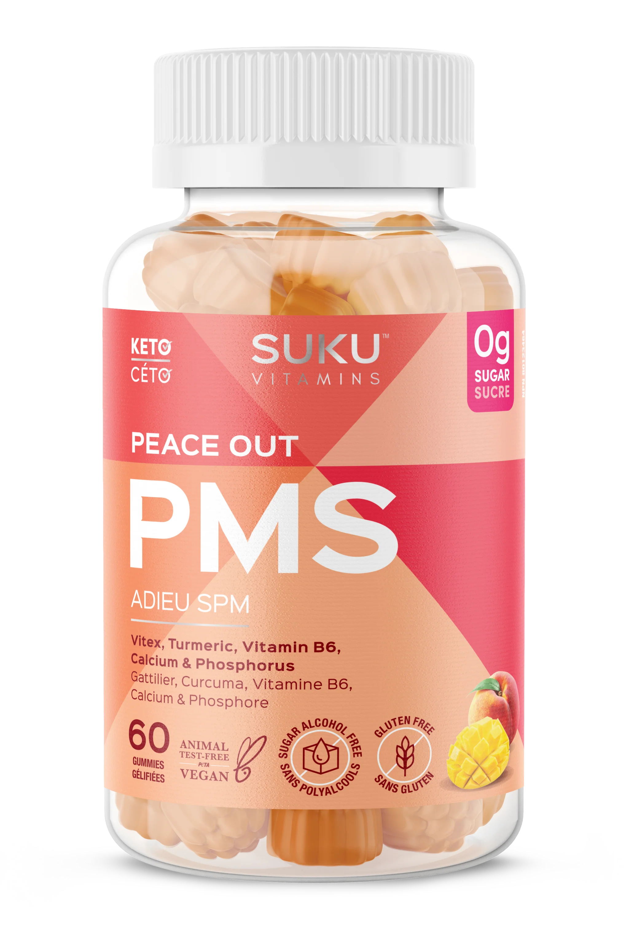 Ingrédients non médicinaux : Sirop de tapioca, eau purifiée, pectine, agar, acide citrique, citrate de sodium, extrait de feuille de stévia, cire de carnauba, arôme naturel de fruit, bêta-carotène, triglycérides à chaîne moyenne.