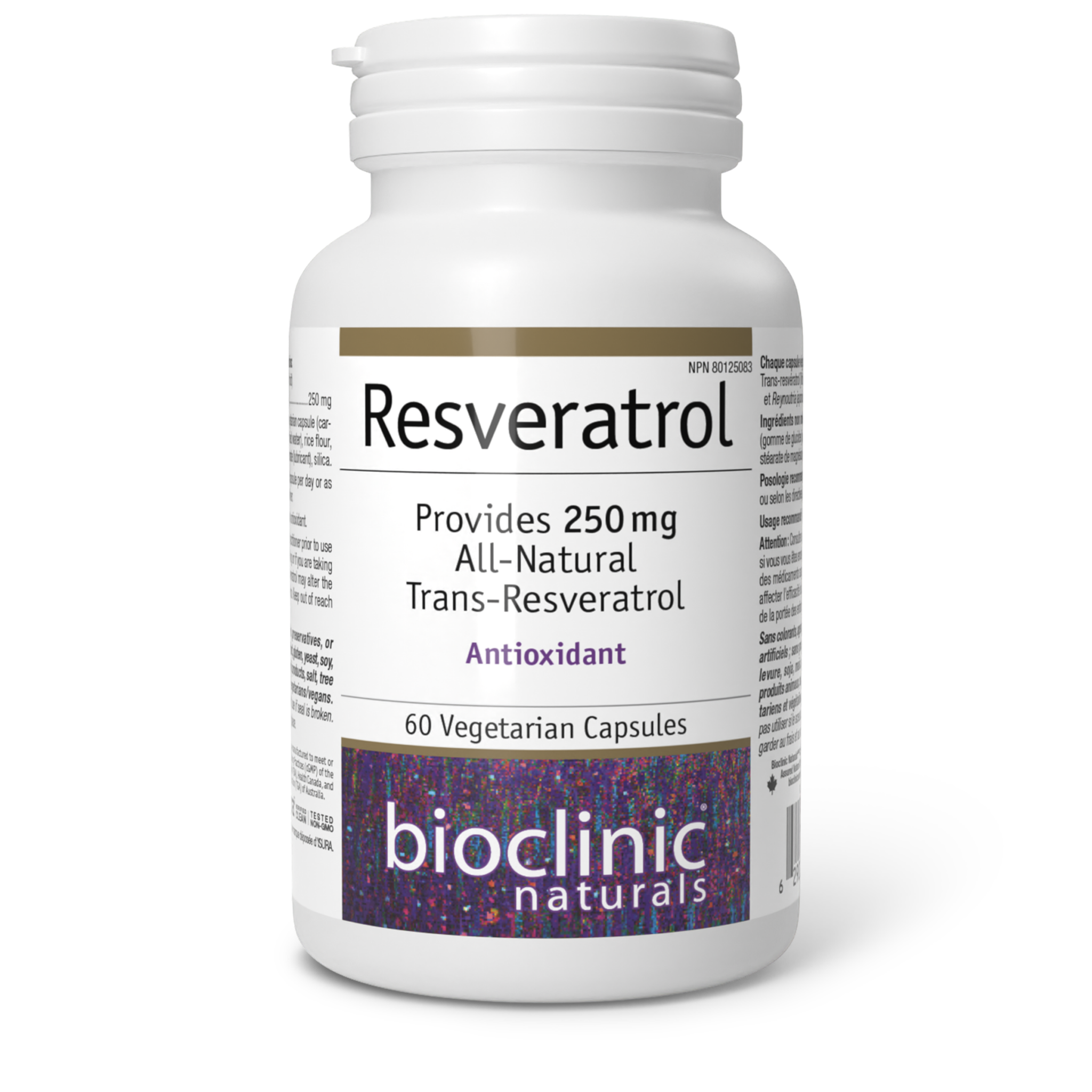 Ingrédients médicinaux : Trans-Resveratrol [Vitis vinifera (fruit) et Reynoutria japonica (racine)] 250 mg
